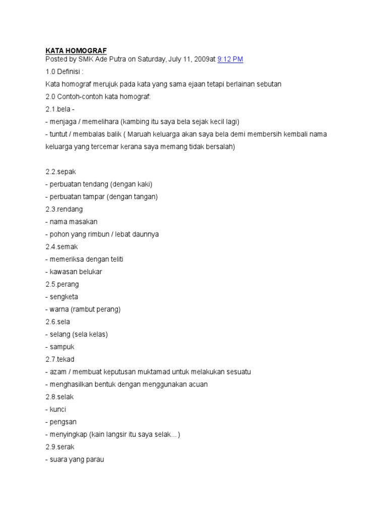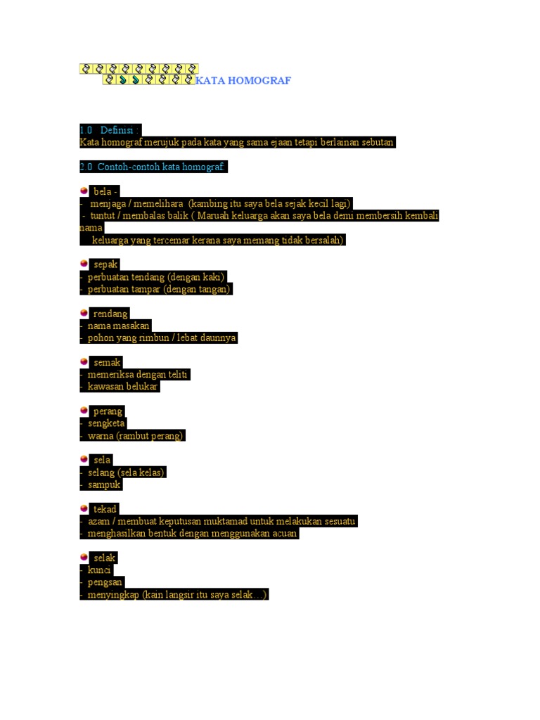 50955887 Kata Homograf Docx Kata Homograf 1 0 Definisi Kata Homograf Merujuk Pada Kata Yang Sama Ejaan Tetapi Berlainan Sebutan 2 0 Contoh Contoh Course Hero